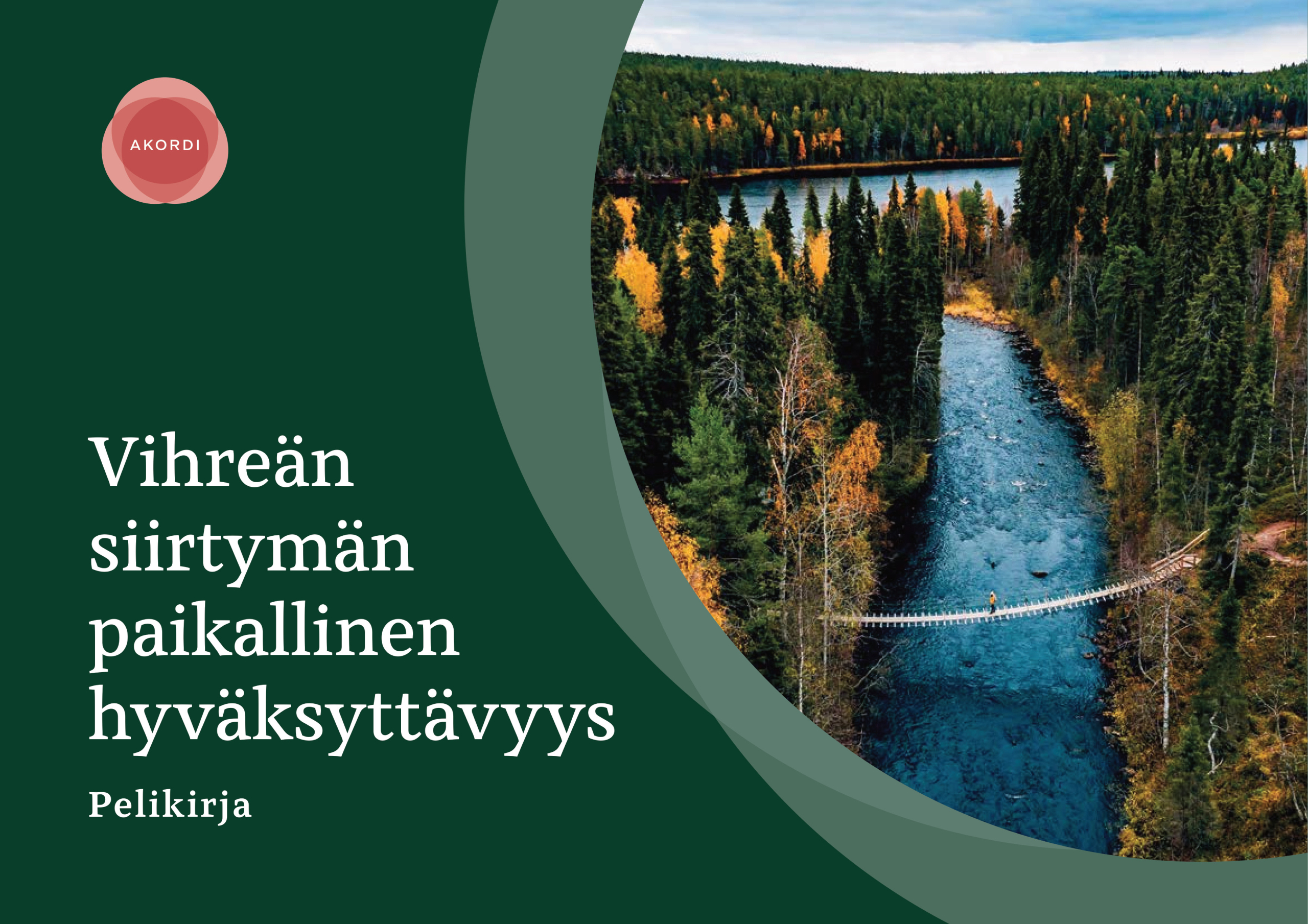 Julkaisimme marraskuussa 2024 Vihreän siirtymän paikallinen hyväksyttävyys -pelikirjan, jonka pääviestinä on, että konflikteja ei ole pakko välttää tai voittaa. Pelikirjassa keskitymme hankekehityksen varhaisvaiheeseen ja tarjoamme toimivaksi osoittautuneita ajattelun ja tekemisen työkaluja, joiden avulla voi rakentaa parempaa vuorovaikutusta, yhteistyötä ja luottamusta ja niiden myötä hankkeiden hyväksyttävyyttä. Lue lisää ja lataa ilmainen pelikirja käyttöösi suomeksi tai englanniksi.